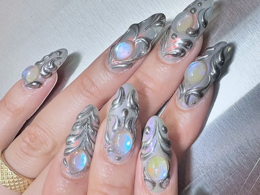 ناخن نقرهای براق و آینهای، حس futuristic و جسورانه میده – عالی برای شروع سال جدید!