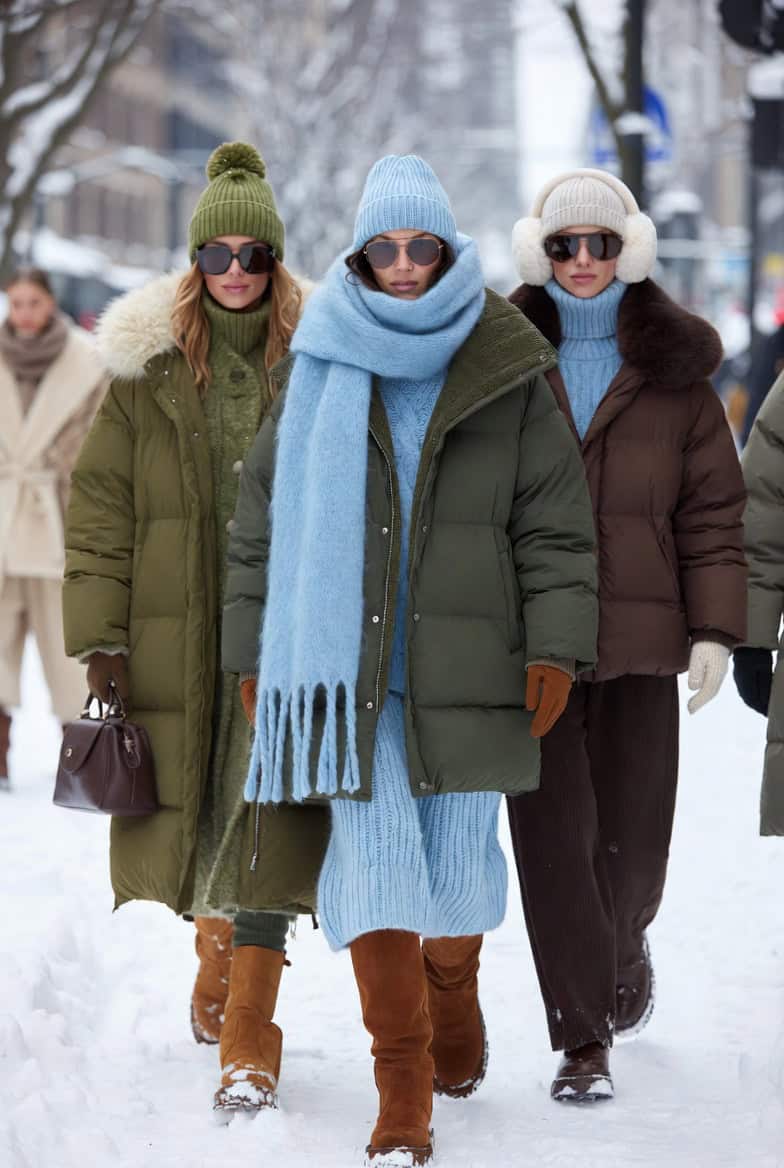 - شالها و اسکارفهای بزرگ: مدلهای مثلثی یا faux-fur که به لباسهای ساده حجم میدن. یه شال سبز زمردی میتونه کل استایل رو تغییر بده.