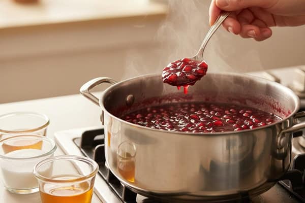 مرحله دوم: دانههای انار را با آبمیوه بجوشانید