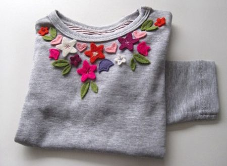 یک بلوز ساده را با چند تکه نمد (فوتر) می شود زیبا و شاد کرد! طرح های مختلفی از گل ،برگ ،ستاره و قلب های کوچک از فوتر در رنگ های مختلف ببرید . گل های نمدی آماده …